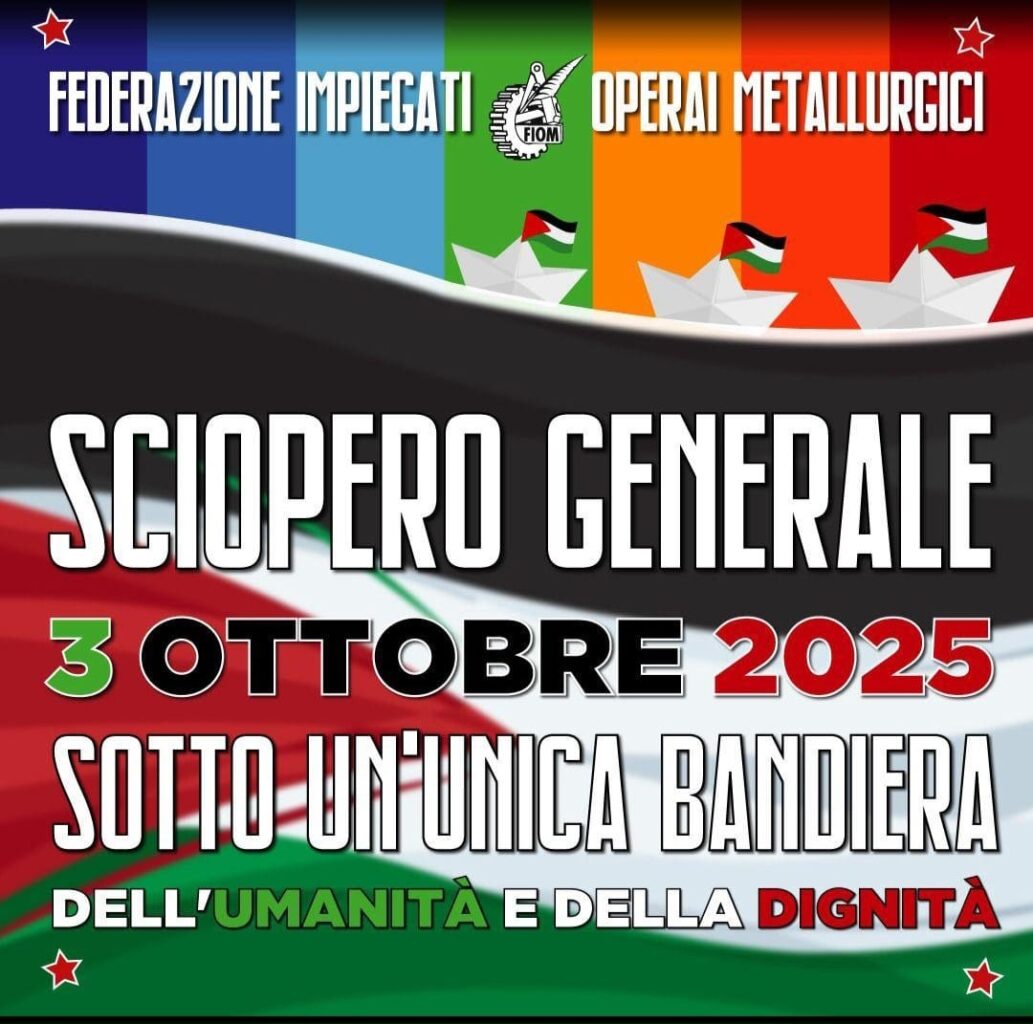 Global Sumud Flotilla. La Fiom partecipa allo sciopero generale indetto dalla Cgil per venerdì 3 ottobre