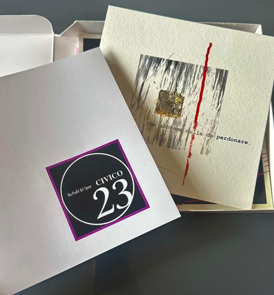 Tra i partecipanti, anche l’artista termolese Carla Di Pardo che ha partecipato con due opere inserite in due progetti distinti: “Fuori tempo – La Speranza in mostra”, per il progetto 100×100 Libri d’Artista, a cura di Alessandra Scappini, curatrice e critica d’arte per la Galleria Sincresis di Empoli; “Non abbiamo nulla da perdonare”, per il progetto Living in the box n.7, per la Galleria Civico 23 no Profit Art Space di Salerno, a cura di Angelo D’Amato e Rosario Mazzeo.