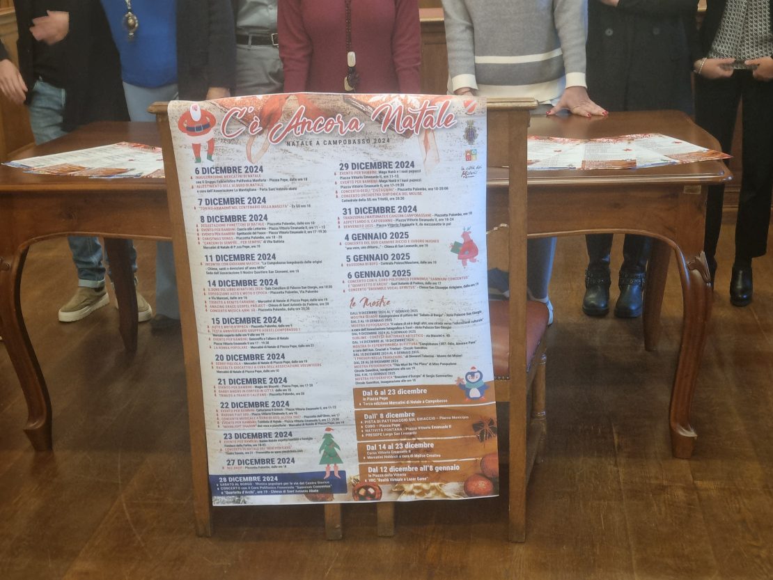 “Il programma, come ha sottolineato Giovanna Viola, ricco senza elencare gli eventi poggia sui bambini con istallazioni permanenti. Piazza Prefettura non solo Albero e pacco regalo insieme ai mercatini di Natale. Invitiamo la cittadinanza a fare i propri regali lì. Novità per il Molise in assoluto. Due eventi un po più di richiamo. Uno il gospel con più elementi e il concerto dei neri per caso al Savoia il 23 dicembre”.