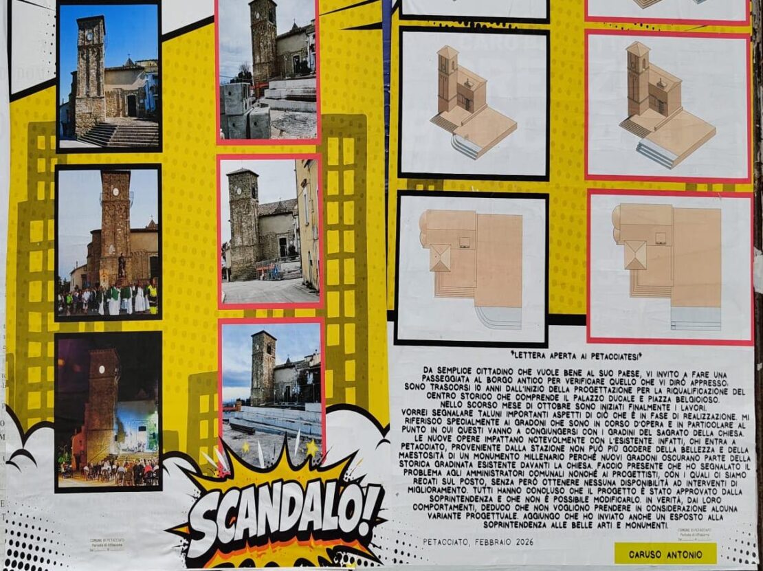 Il paradosso più evidente è sotto gli occhi di tutti: è davanti alla chiesa “vecchia” del borgo antico, nel cuore dell’area più fragile. Lì, pochi anni fa, hanno demolito case per alleggerire il peso sul costone, con altri soldi pubblici spesi. E poi, pochi mesi fa, proprio nello stesso punto, si è scelto di colare tonnellate di cemento per realizzare “gradoni e sagrato della Chiesa di Santa Maria”. Tonnellate di cemento. Cemento sopra fragilità. Una scelta che lascia senza parole.