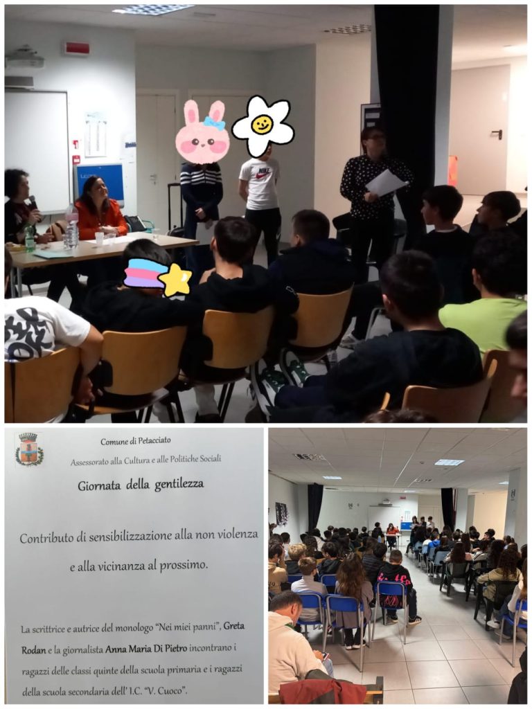 L’amministrazione comunale è stata rappresentata dalla sindaca Maria Luisa Forte e dall’assessora alle politiche sociali del Comune di Campobasso che ha reso possibile questo evento speciale, confermando il suo impegno nel promuovere iniziative che uniscano cultura, educazione e valori positivi per il futuro della città. Durante l’evento i bambini hanno consegnato ai presenti le ruote della gentilezza, realizzate nei mesi precedenti con le operatrici del CAV Liberaluna, Valeria Valeri e Ludovica Felice sono state il simbolo del nostro impegno a rendere il mondo un posto più gentile e accogliente. Vedere i bambini coinvolti con così tanta passione e spontaneità è stato emozionante e ha dimostrato come anche i gesti più semplici possano avere un grande impatto nel sensibilizzare alla non violenza.