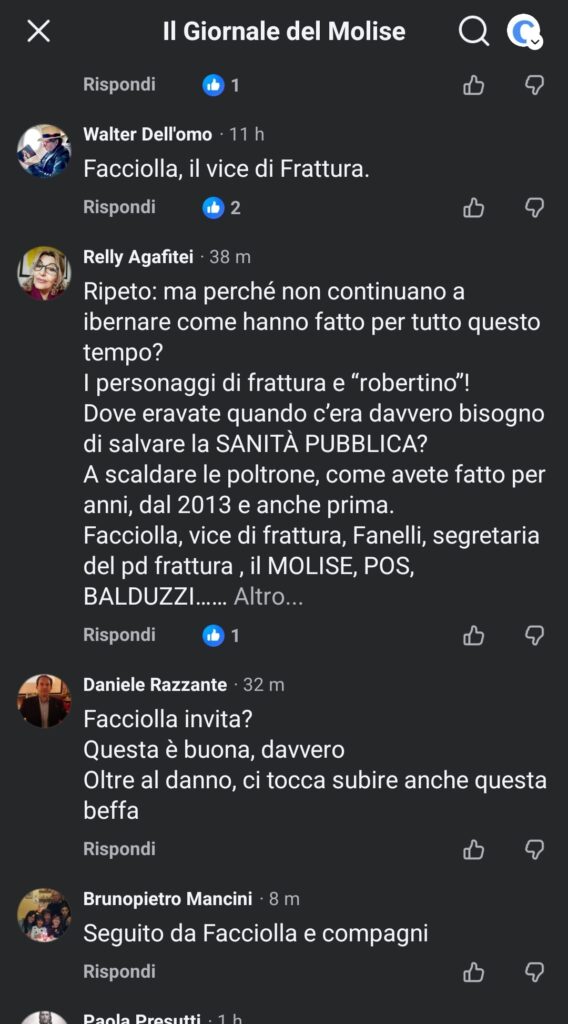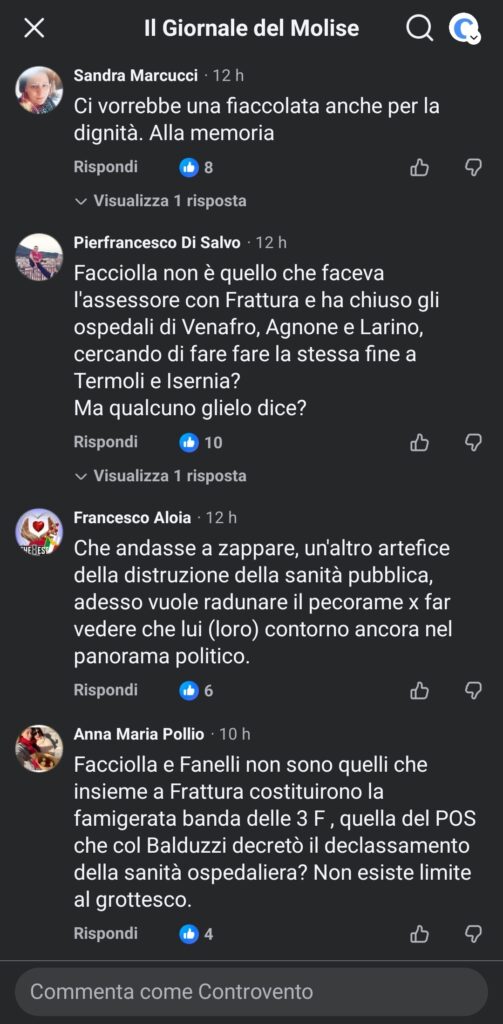 Ma se Facciolla pensava di beneficiare dell’oblio dei molisani si è sbagliato alla grande. Il ricordo di quanto avvenuto è ancora vivo nella memoria di chi nella tarda serata di ieri ha sommerso la homepage del Giornale del Molise che ha deciso liberamente di dare questa notizia.
