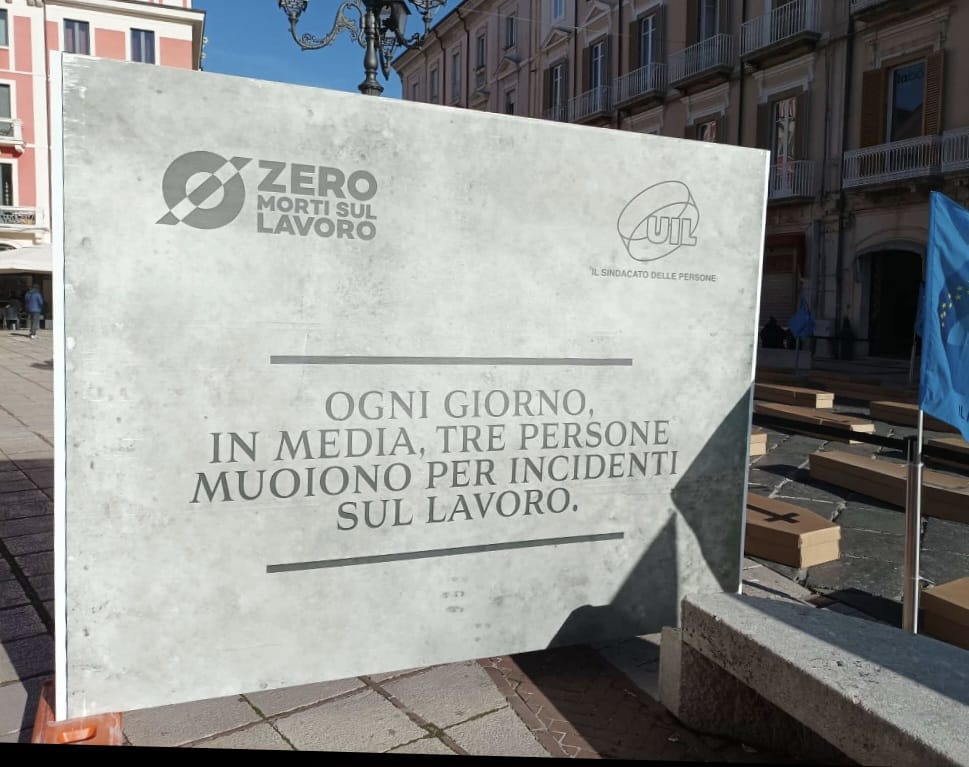 Sicurezza sul lavoro, la Uil Molise porta 102 bare in piazza Prefettura a Campobasso. “Basta morti e infortuni sul lavoro!”