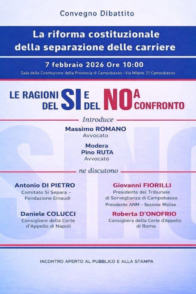 “La riforma costituzionale della separazione delle carriere”, le ragioni del sì e del no a confronto a Campobasso domani alla Sala della Costituzione