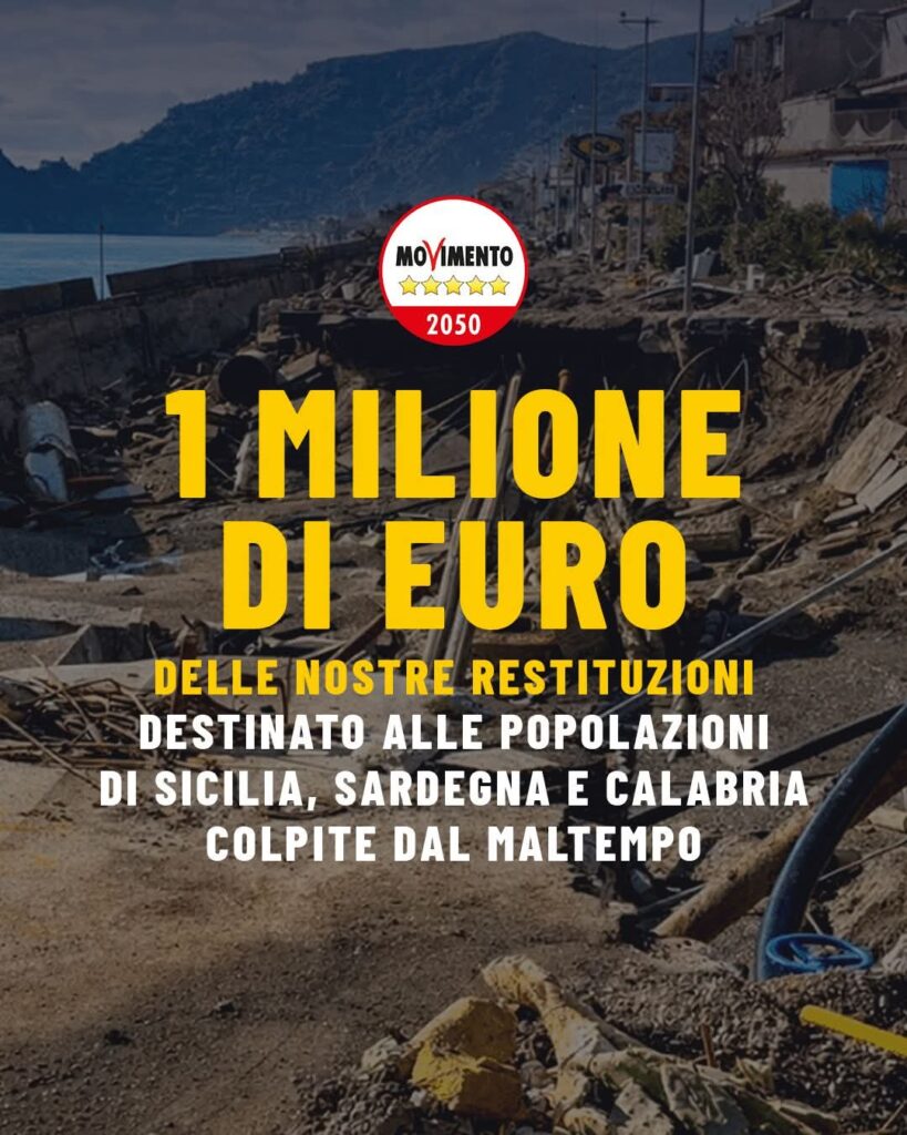 Eventi climatici avversi, il Movimento Cinque Stelle destina un milione di euro proveniente dalle restituzioni dei portavoce