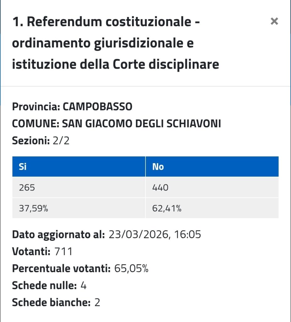 Nella sua San Giacomo il No ha raggiunto addirittura il 62,41%. Contro un sì che non supera il 37,59%.