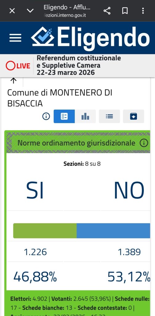 Ed è qui che scopriamo un dato inaspettato: anche a Montenero di Bisaccia vince il no con 1389 voti contro i 1226 del sì.