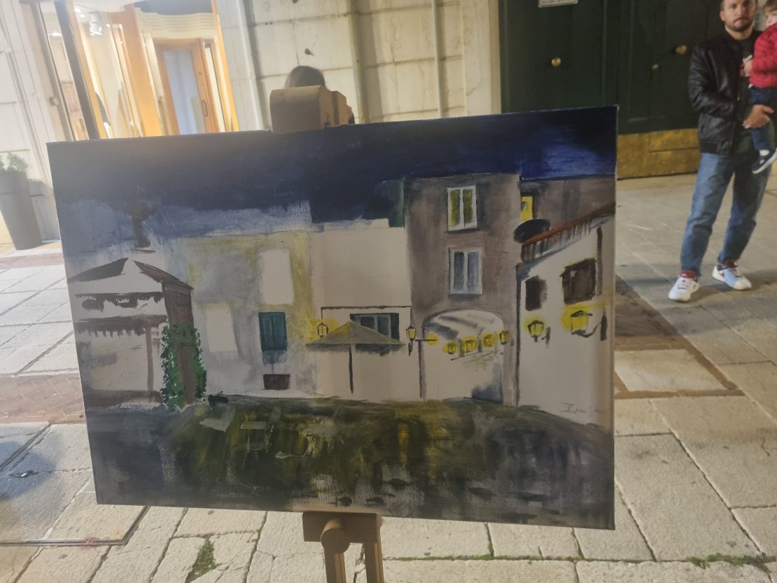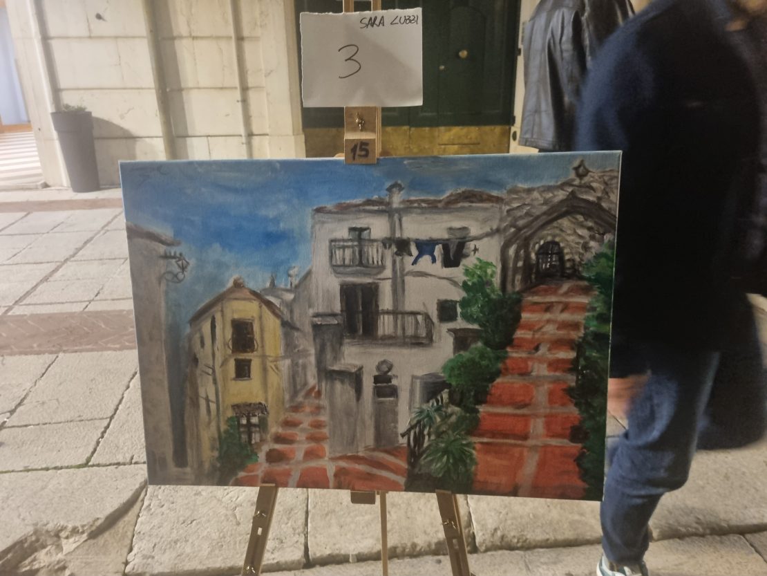 La gara è iniziata alle 18 di ieri. Gli artisti ( più donne che uomini) hanno avuto tre ore di tempo per realizzare un dipinto che riguarda uno scorcio della città di Campobasso.