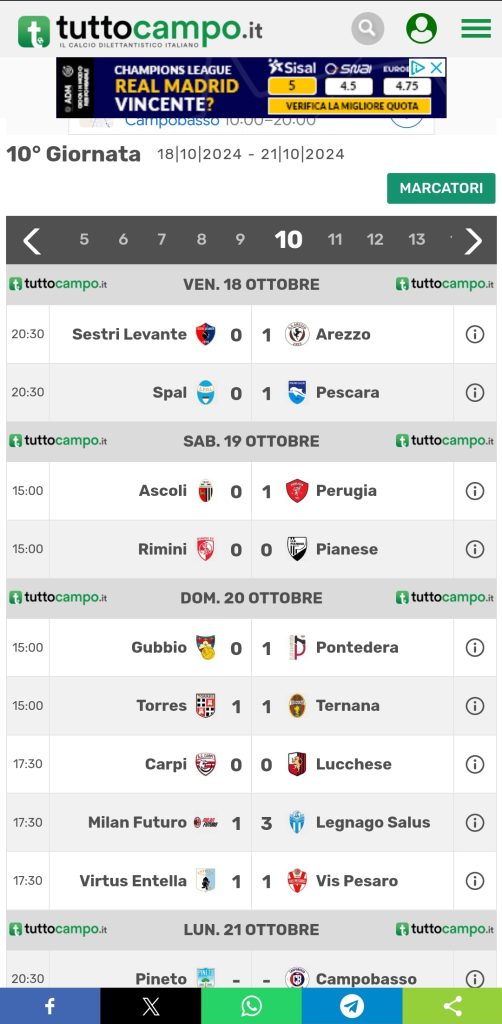 Ormai manca solo la trasferta del Campobasso a casa del Pineto per completare la decima giornata di serie C girone B.