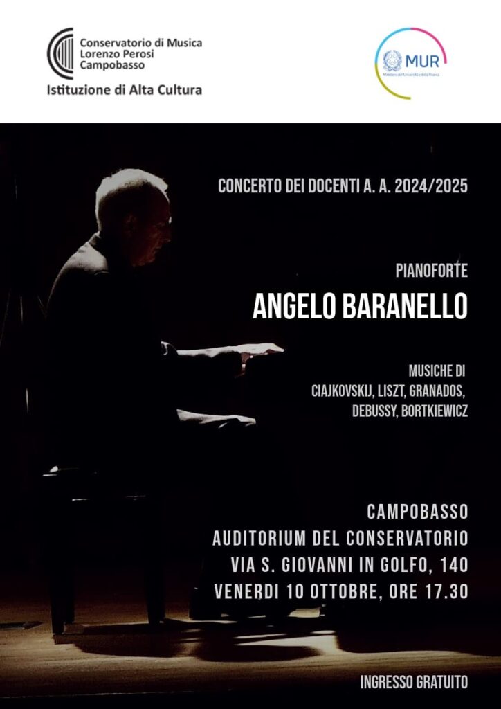 Conservatorio, in scena i docenti: al pianoforte il professor Angelo Baranello