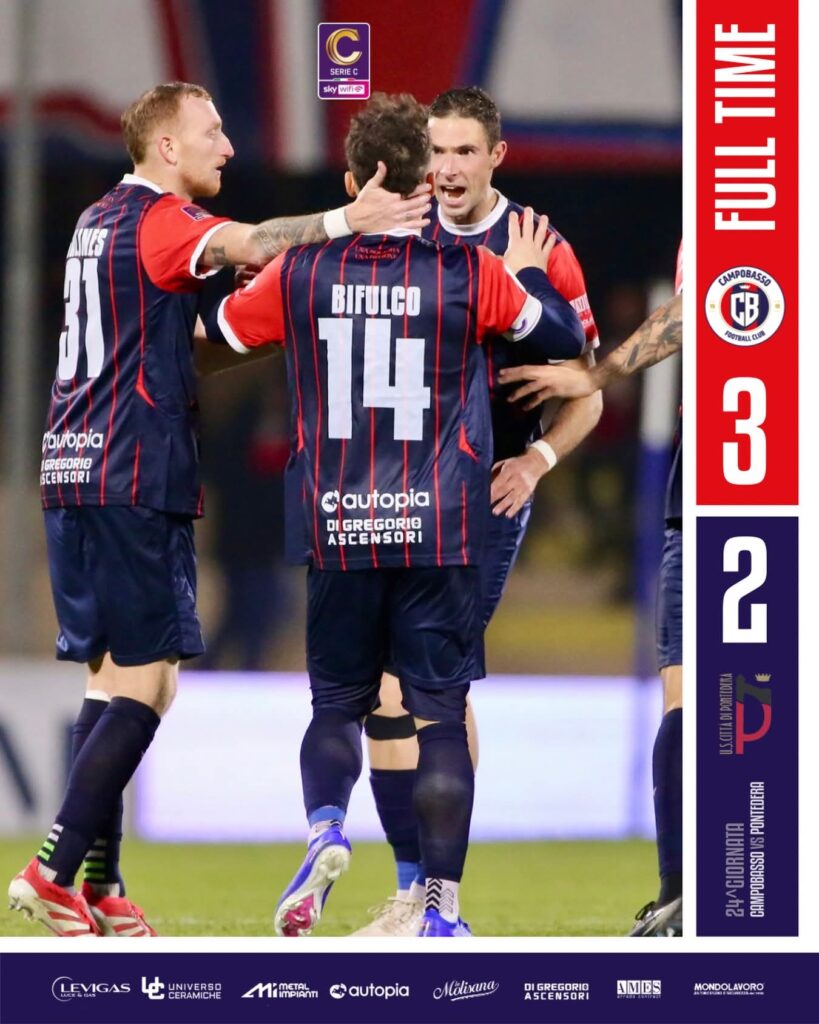 Serie C, Girone B: Il Campobasso soffre, reagisce e vince: Pontedera battuto 3-2 al “Molinari”