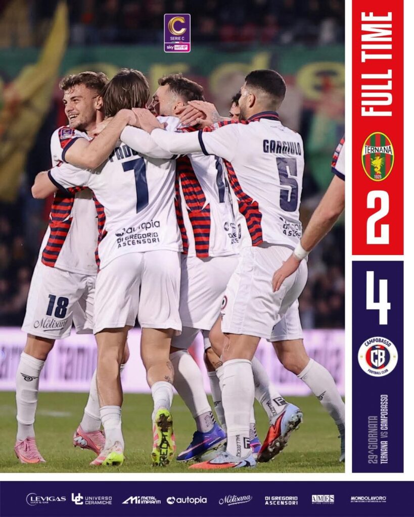 Serie C, Girone B: Campobasso maturo e spietato a Terni: vittoria per 2-4 pesante e quarto posto in solitaria