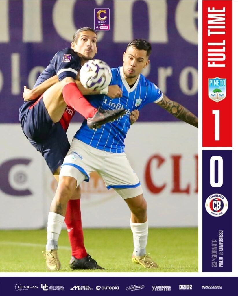 Serie C, Girone B: Campobasso ko in inferiorità numerica a Pineto: decide D’Andrea su calcio di rigore