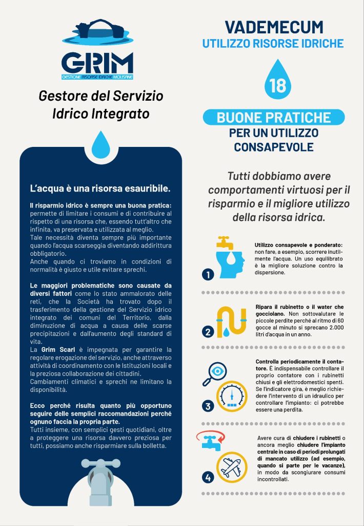 Diciotto comportamenti per “salvare” l’ acqua: ecco il vademecum Grim
