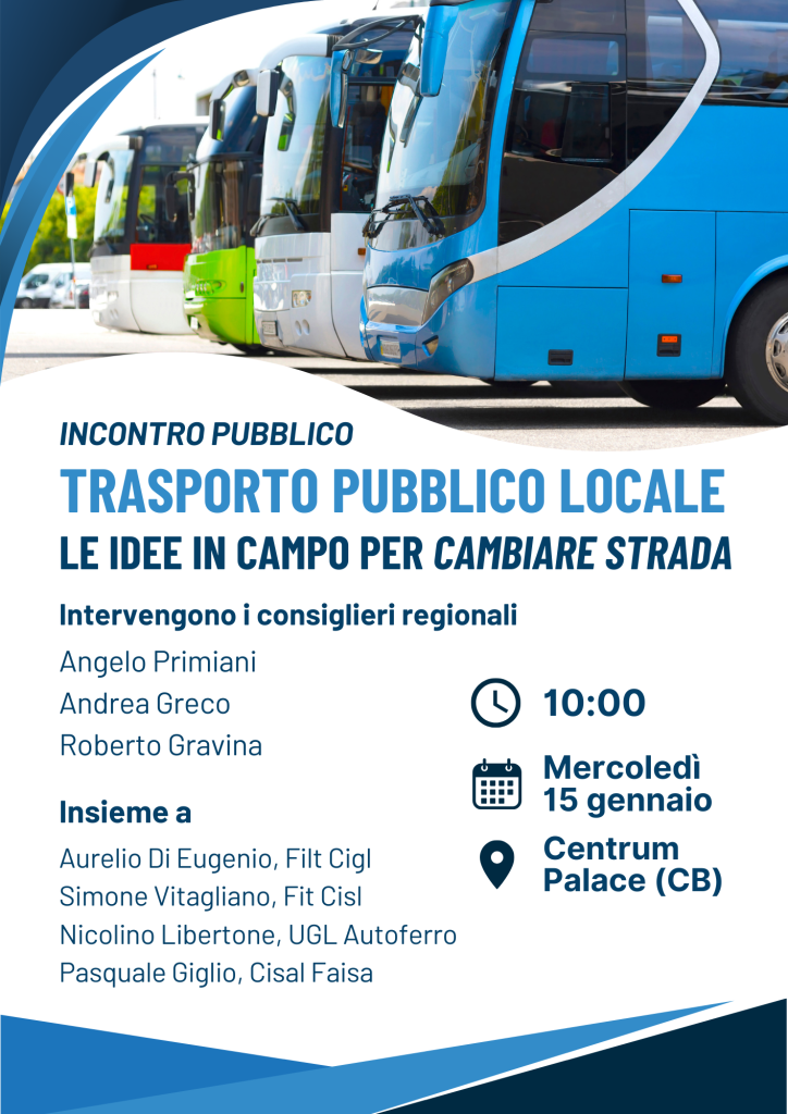 Trasporto pubblico locale, le idee per cambiare rotta: mercoledì 15 gennaio l’incontro a Campobasso