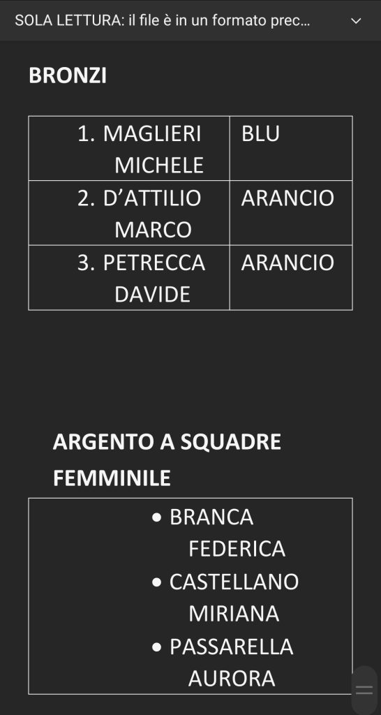 Domenica 15 dicembre si è svolto a Ferentino nel Lazio il TROFEO FERENTINO, di livello interregionale. Erano presenti squadre del Lazio, della Campania, della Puglia e del Molise.La Scuola SHOBU KAI KARATE CLUB del M° DI DONATO si è classificata al terzo posto nel medagliere di società grazie alle 14 medaglie INDIVIDUALI (5 Ori, 6 Argenti e 3 Bronzi) e alle 6 medaglie a squadre (3 Argenti e 3 Bronzi).Ancora una volta la Scuola del M° DI DONATO si è confermata ai vertici del Karate nazionale.Una buona prova in vista dei prossimi Campionati Federali.
