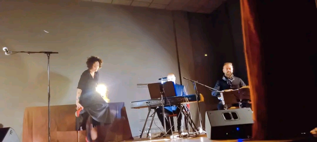 Ringrazio La Rosa e il libro ODV che ha organizzato e finanziato l’iniziativa, ringrazio la presidente Elena Grande magnifica donna e il Comune di Colli che ci ha ospitato in questo nuovo delizioso teatro, inaugurato da poco. In questa occasione le uncinettine di Colli, con La rosa e il libro, hanno realizzato delle piccole bellissime rose che sono state posizionate in vari punti del paese, partecipando al progetto internazionale #rosesagainstviolence segno di vicinanza alle donne vittime di violenza.Un grazie speciale ad Antonia Ranieri uncinettina e membro de La rosa e il libro, grazie per la disponibilità totale e per la gentilezza e per la vicinanza. Ringrazio la Società del Mutuo Soccorso di Colli che ha offerto la propria collaborazione.Ringrazio Gabriel Paolone per aver ripreso l’intero spettacolo con la sua Zona Rossa WebTV e Achille Mosca per le sue foto.Ringrazio Nicola Palladino e Ivan Zullo per il service perfetto.Grazie a Dario Palumbo per le luci e perché crede da sempre in quello che faccio e a al mio Dario per il grande aiuto e per la lampada che ha realizzato per l’occasione e che mi ha accompagnato nella performance.Grazie al numeroso pubblico così attento e caloroso.Grazie all’amore, che muove il sole e l’altre stelle e sempre muove tutto, in noi”.