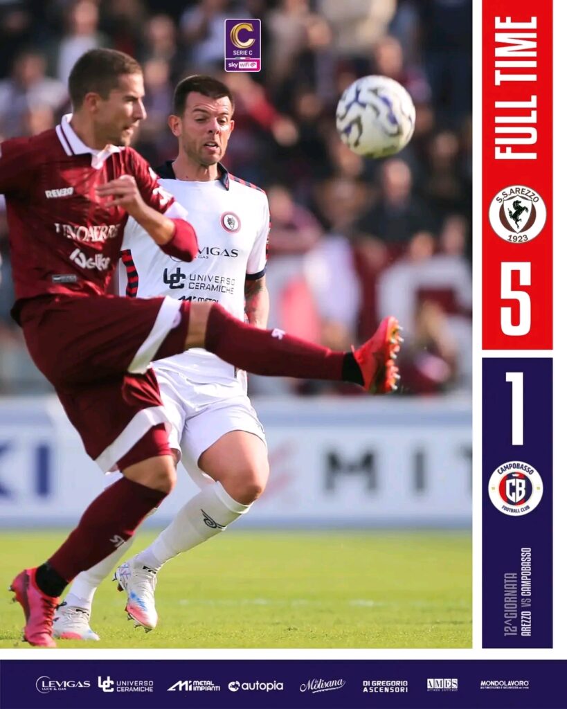 Serie C girone B: sconfitta horror per i lupi, un Arezzo superiore vince 5-1 contro i molisani
